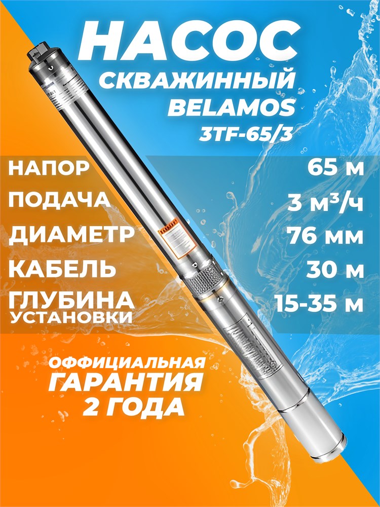 Насос скважинный Belamos 3TF-65/3 каб.30м 3м3\час напор 64м.